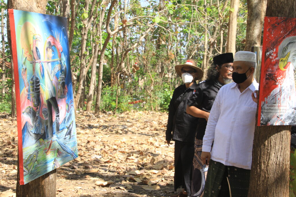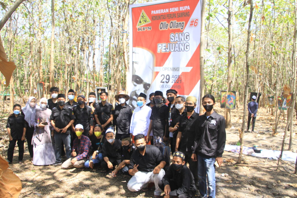 assirojiyyah.online. Komunitas perupa sampang (KPS) , gelar pameran seni rupa untuk mengenang jasa budayawan KH.Sholahur Robbani yang bertajuk " sang pejuang olle ollang#6 " di hutan jati jalan Pajudan Sampang, minggu ( 29/08/2021 ) pagi.