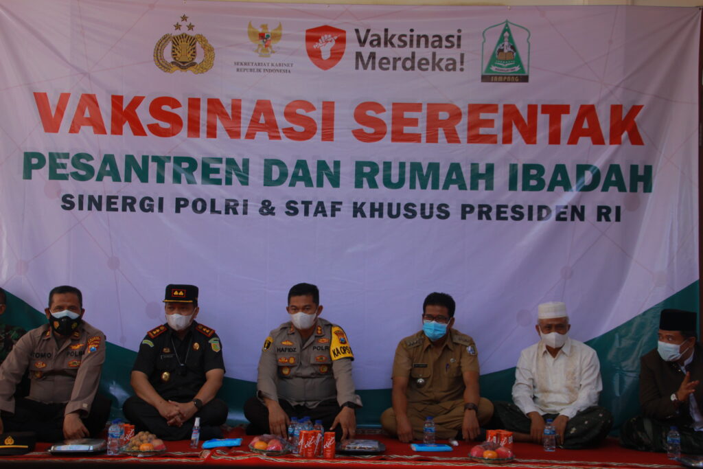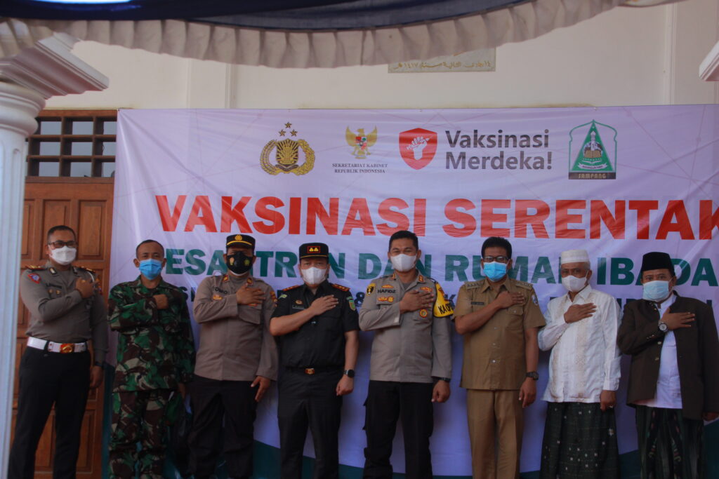 AKBP Abdul Hafidz selaku kapolres sampang menyampaikan, Vaksinasi merdeka tersebut diselenggarakan secara serempak di seluruh Indonesia, serta diinisiasi langsung oleh Presiden RI Joko Widodo dengan sasaran pondok pesantren dan tempat-tempat ibadah