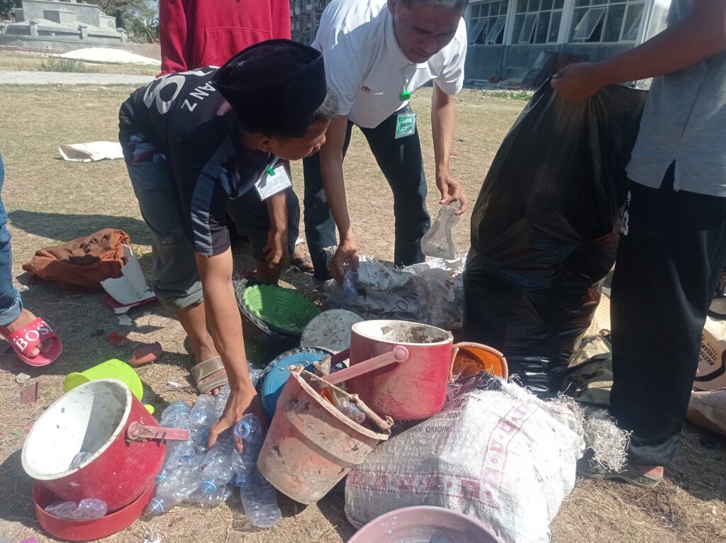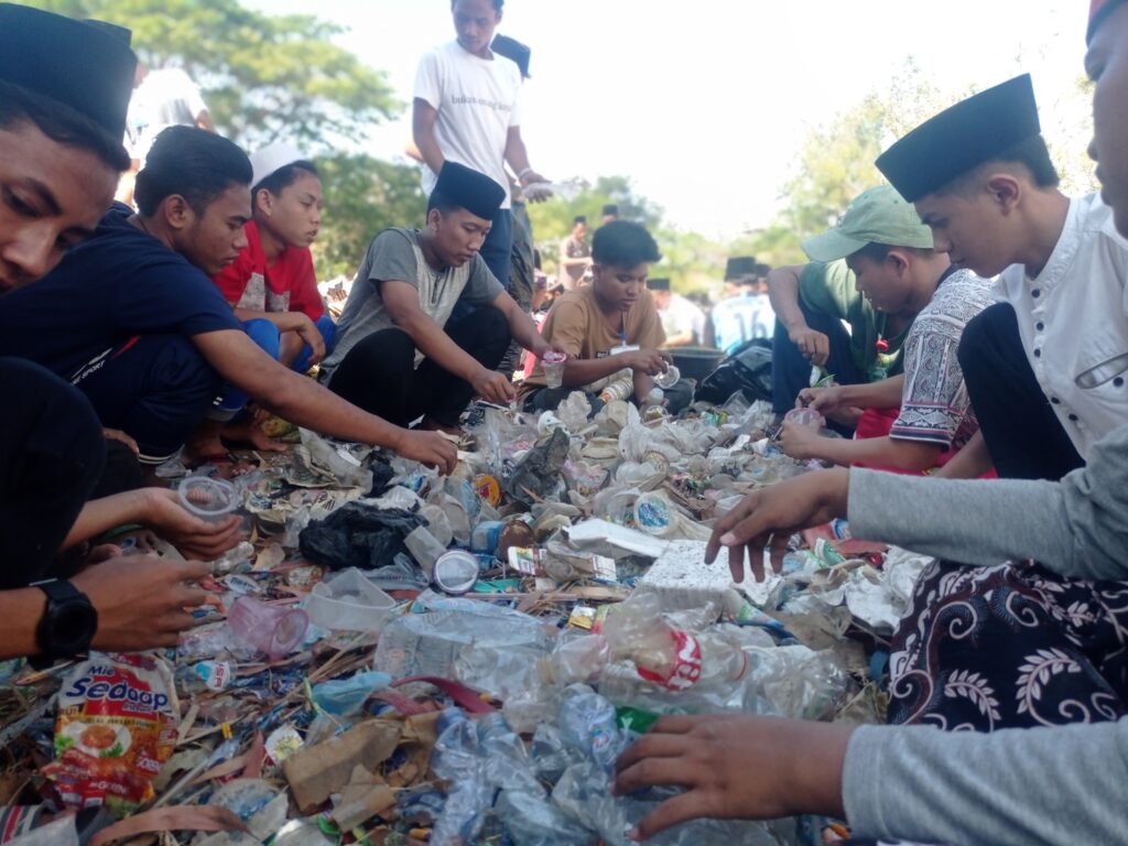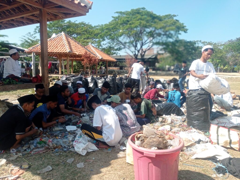 " kami mencari botol plastik, kaleng, kresek dan kardus ini dikawasan pesantren dan mengumpulkannya hingga mencapai sekitar 50 kantong plastik besar,jelasnya ketika kegiaatan berlangsung.